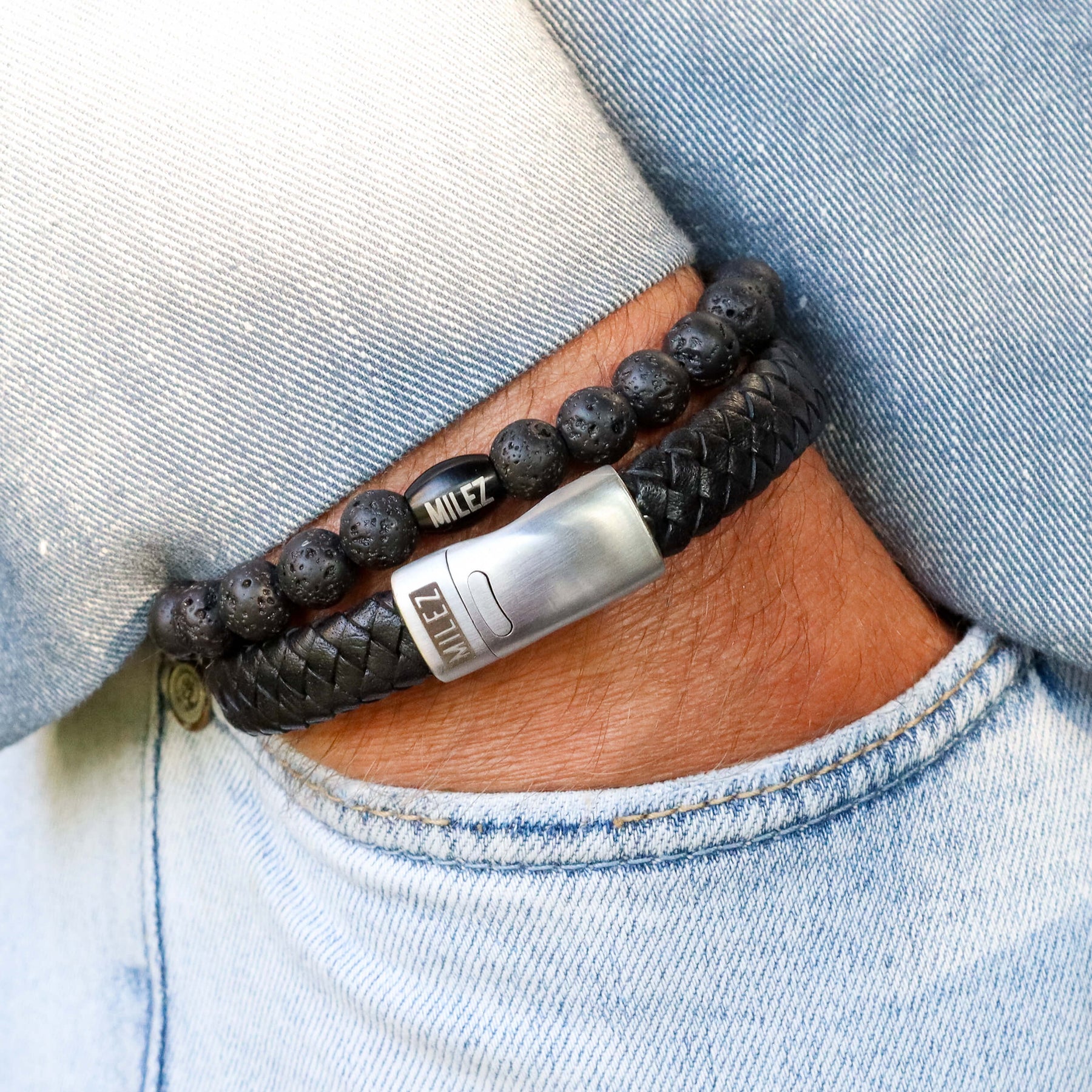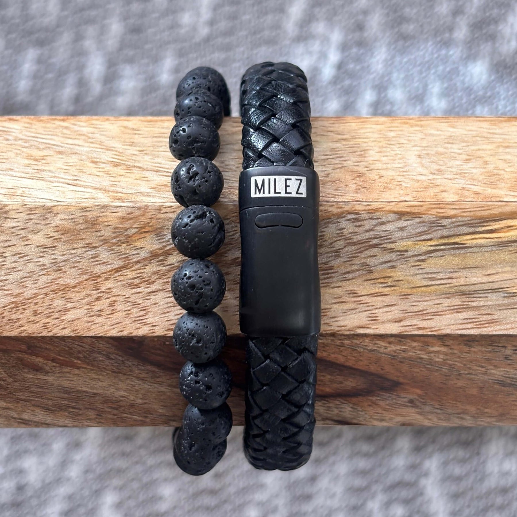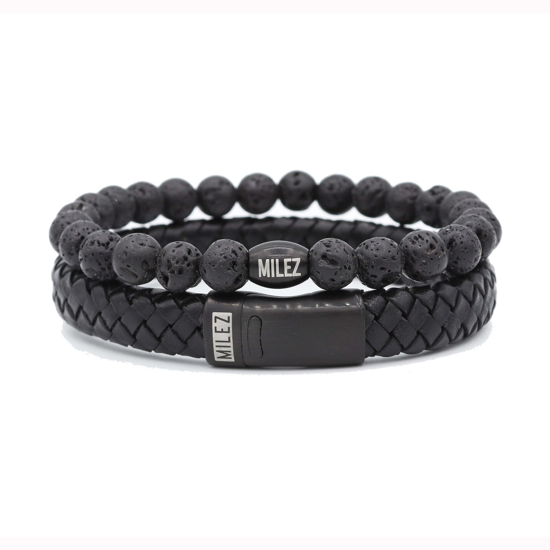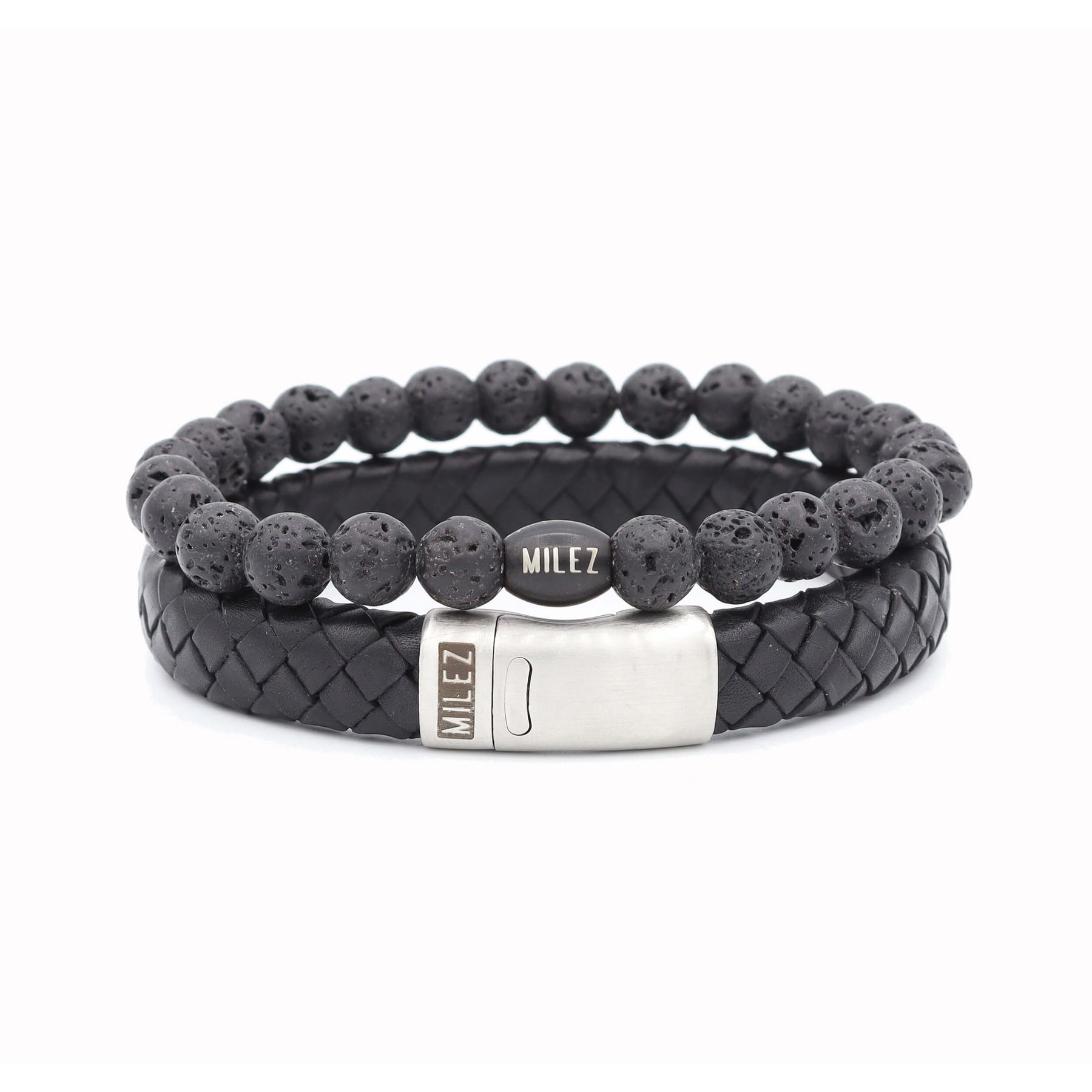 Steel Spirit is gemaakt voor mannen die kracht en stijl willen uitstralen. Deze volledig zwarte set combineert een robuuste leren armband met een matte Onyx kralenarmband.