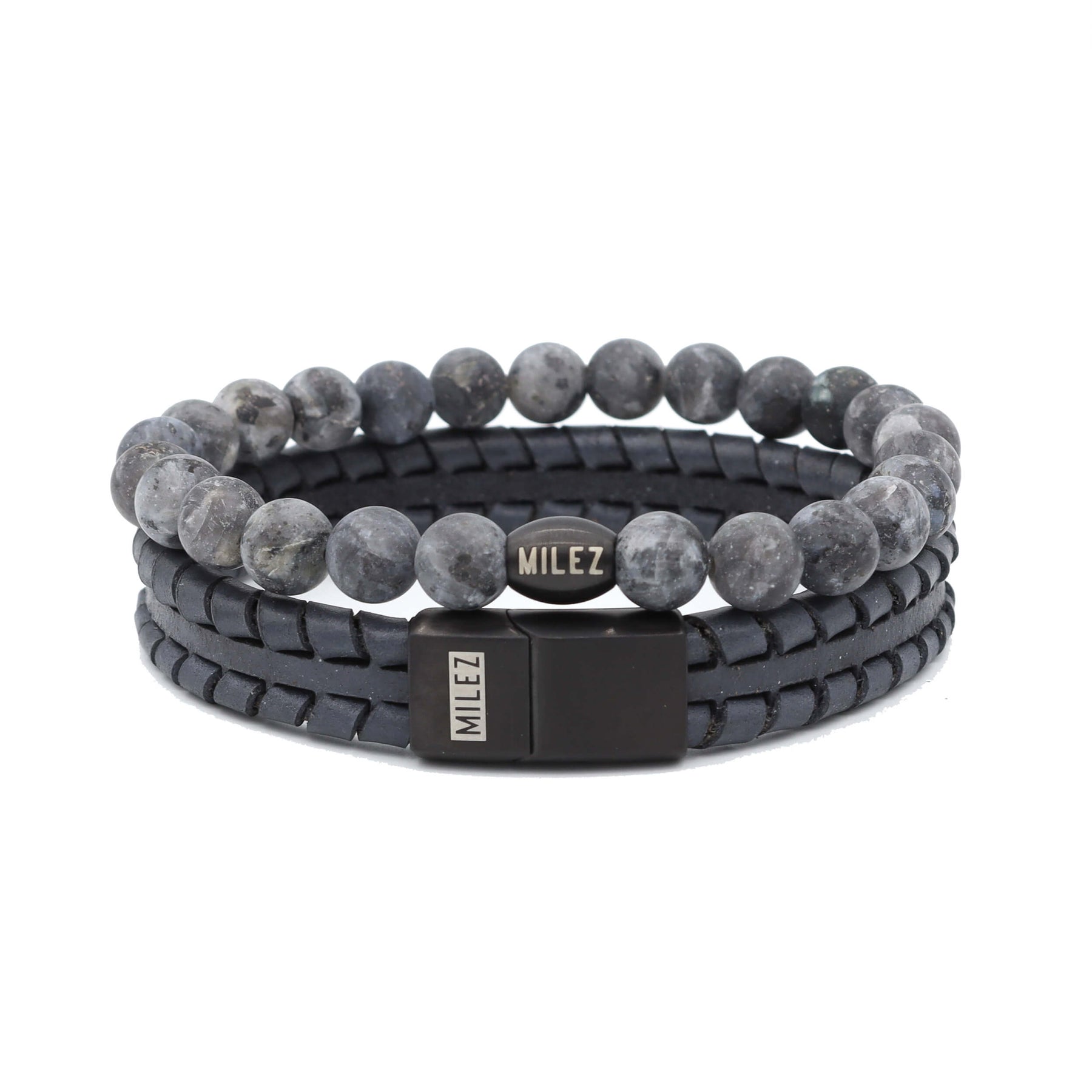 Deze set brengt een koele, mysterieuze elegantie naar je pols. Het grijze leer voelt sterk en vertrouwd aan, alsof je ’m al jaren draagt. De antracieten kralen hebben die subtiele, matte look die je niet snel zat wordt – en juist dat maakt deze set zo bijzonder. Het is geen schreeuwerige eyecatcher, maar eentje die opvalt door z’n rust en stijl.