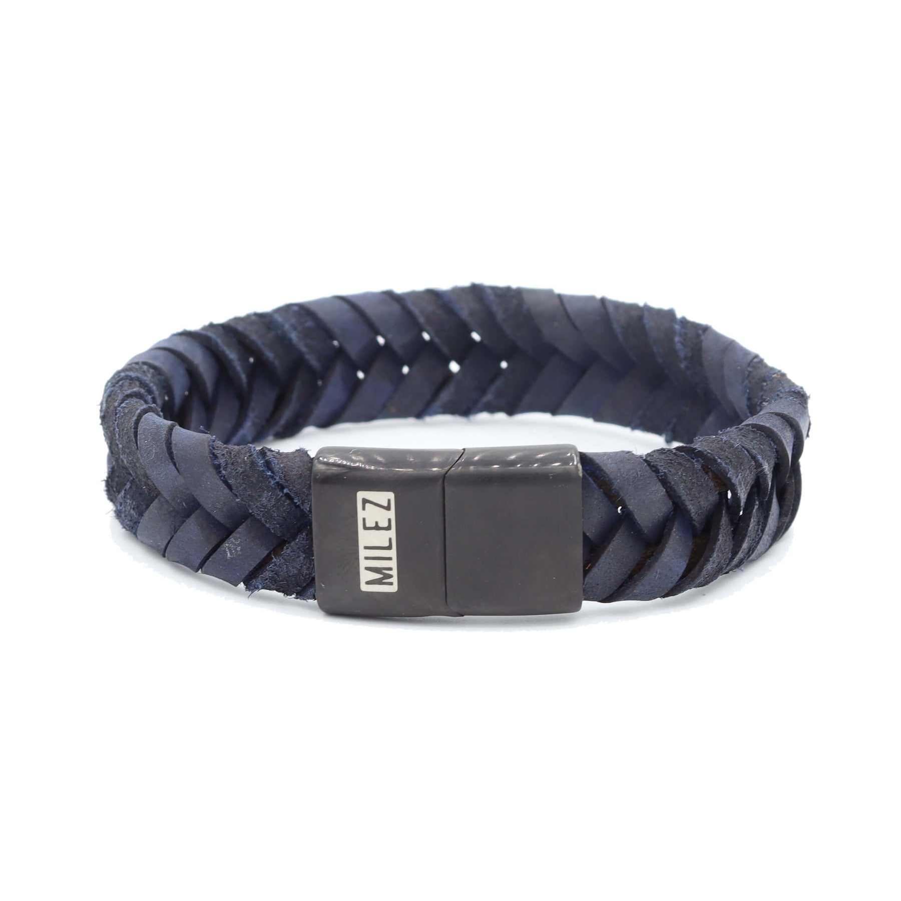 Stoer, stijlvol en een tikkeltje rebels. Deze 15 mm brede armband van donkerblauw leer maakt indruk met zijn diepe kleur en robuuste uitstraling. Het gevlochten leer is een mix van glad en vintage afwerking, wat zorgt voor diepte en karakter. De matzwarte RVS-sluiting geeft de armband een moderne, industriële twist – perfect voor mannen die durven op te vallen.