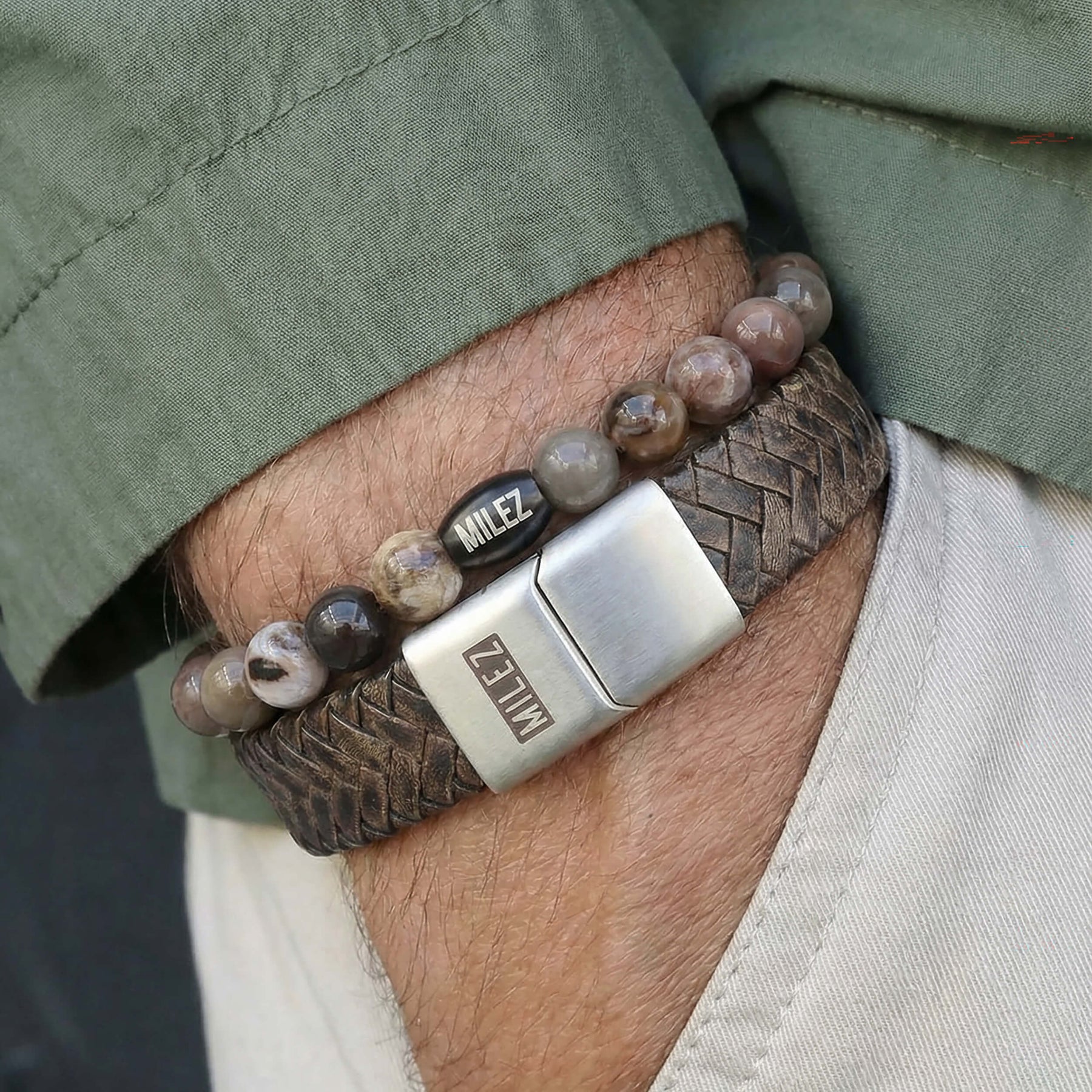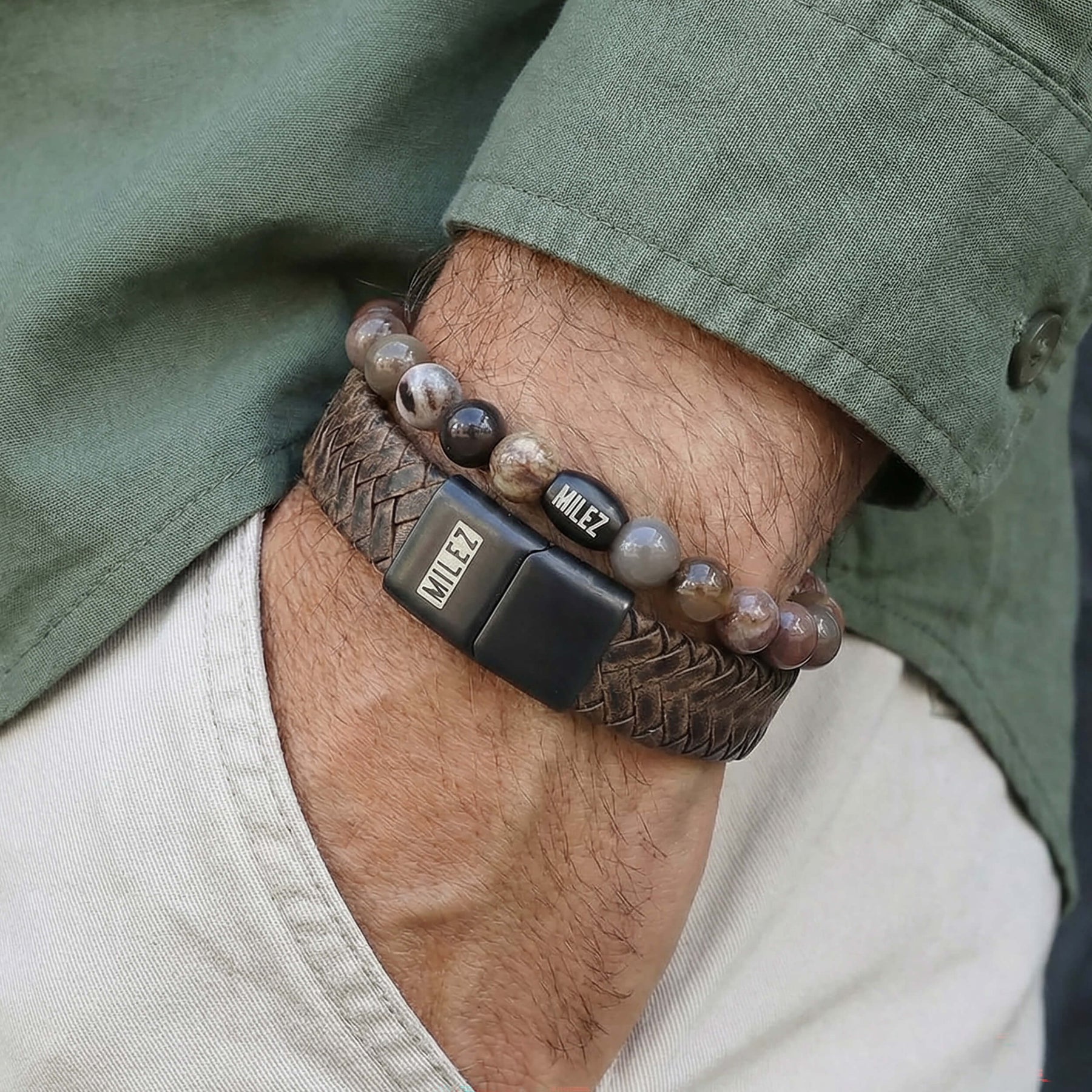 Een set die je eigenlijk het hele jaar door wilt dragen. De donkerbruine leren armband matcht perfect met de kralenarmband in warme bruintinten. Samen vormen ze een rustige, stijlvolle combinatie die moeiteloos blendt met elke outfit.